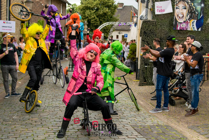 acrobatiek, hoge eenwieler, tricycle, dans, improvisatie theater, unieke fietsen